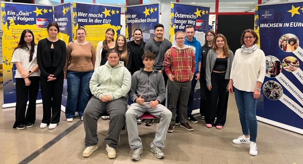 Zum einen machte die Wanderausstellung „30 Jahre Österreich in der EU – Wachsen in Europa“ von EUROPE DIREKT Vorarlberg Halt an der Schule und bot spannende Einblicke in die Entwicklung der Europäischen Union. Zahlreiche Infotafeln mit interaktiven Stationen und anschauliche Materialien vermittelten den Schülerinnen und Schülern viel Wissenswertes über Geschichte, Werte und Projekte der Europäischen Union. Besonders beeindruckend war die Vielfalt der Themen – von Umweltschutz bis zur Jugendförderung.