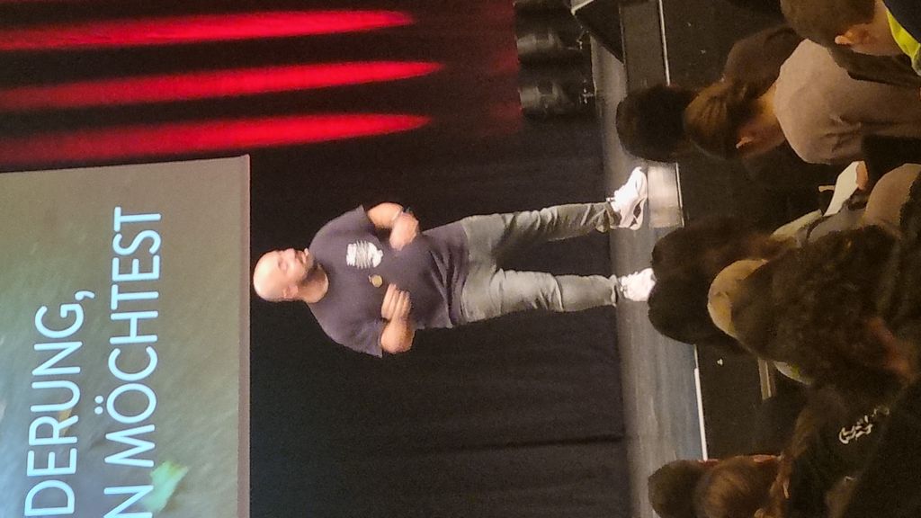 Vor über 1200 Jugendlichen sprach er über seinen eigenen Lebensweg, über Rückschläge, Mut und darüber, wie wichtig es ist, an sich selbst zu glauben und den eigenen Weg zu gehen.