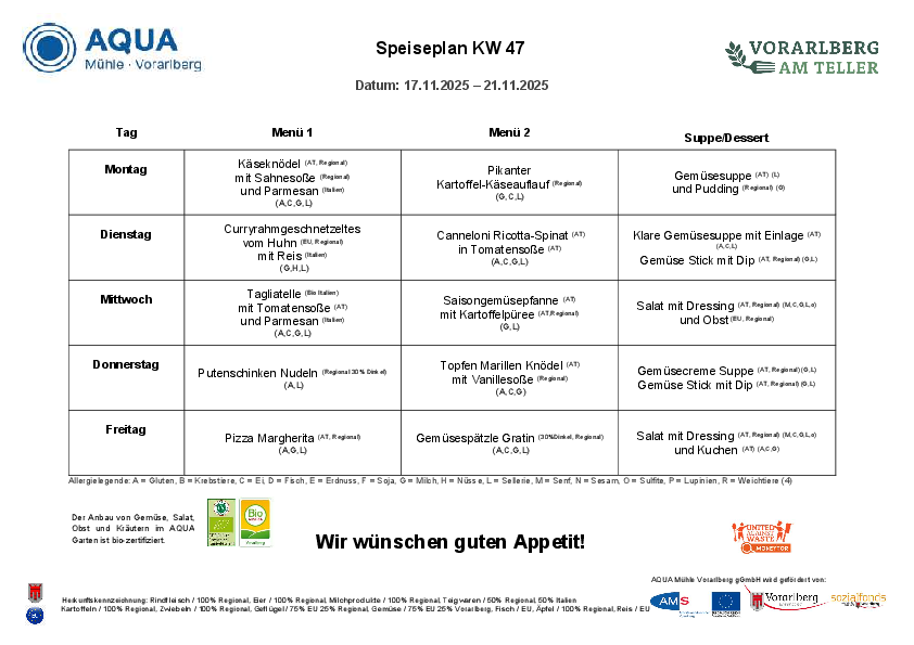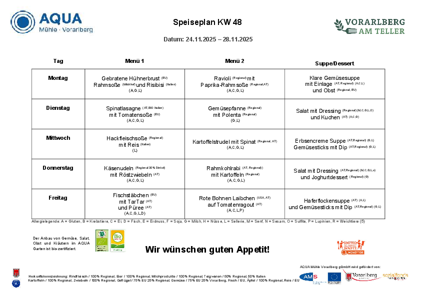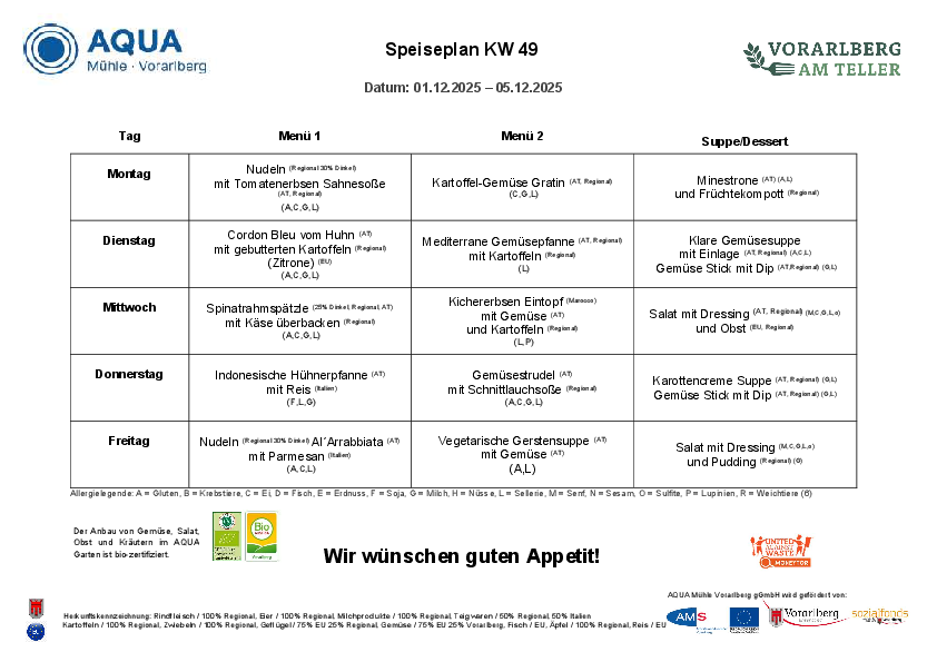 Menüplan | KW 49 | 01. - 05. Dezember 2025
