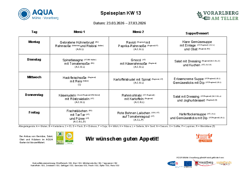 Menüplan | KW 13 | 23. - 27. März 2026