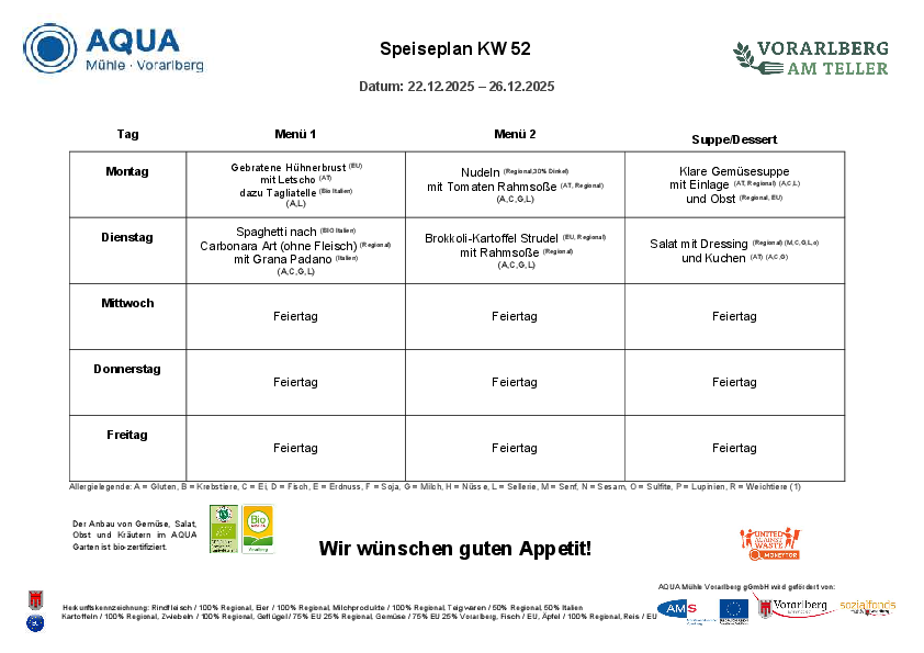 Menüplan | KW 52 | 22. - 26. Dezember 2025