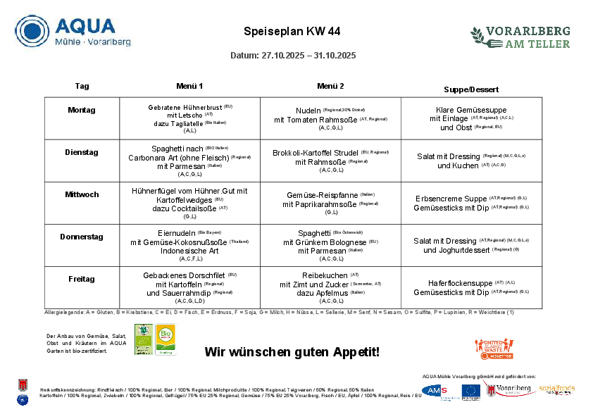 Menüplan | KW 44 | 27. - 31. Oktober 2025