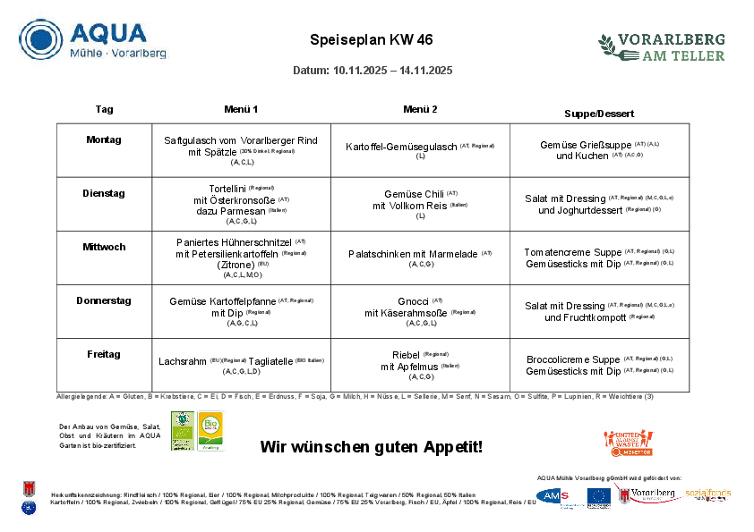 Menüplan | KW 46 | 10. - 14. November 2025