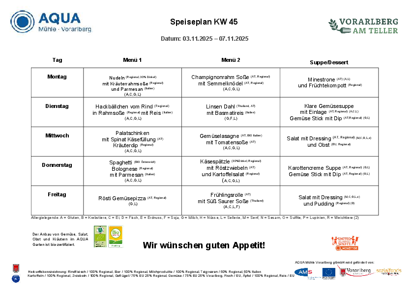 Menüplan | KW 45 | 03. - 07. November 2025