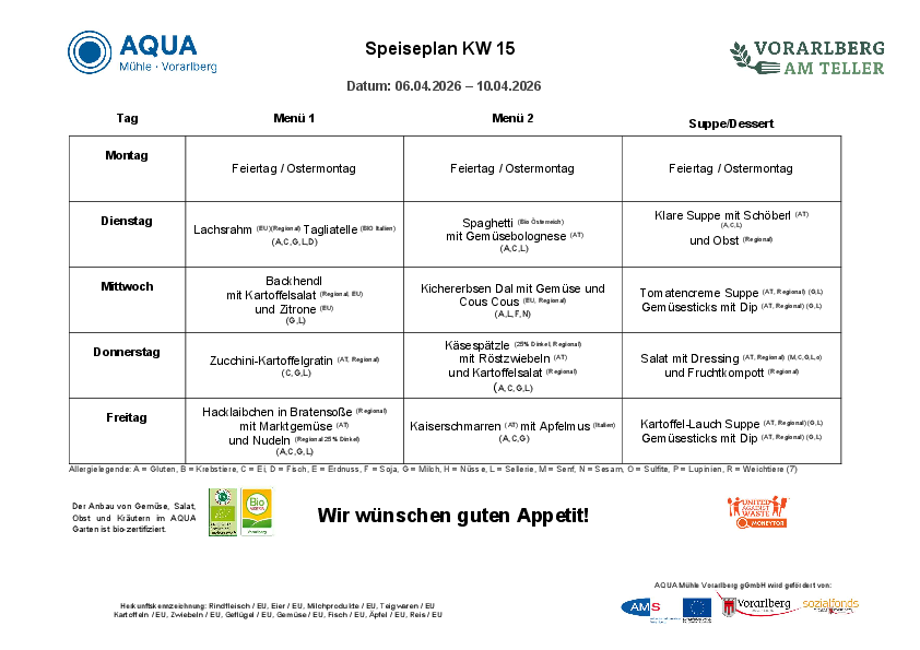 Menüplan | KW 15 | 07. - 10. April 2026