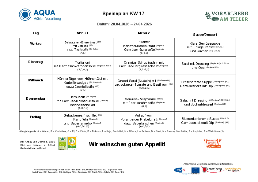 Menüplan | KW 17 | 20. - 24. April 2026