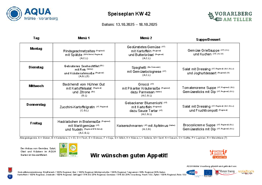 Menüplan | KW 42 | 13. - 17. Oktober 2025
