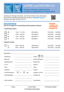Anmeldung und Unterlagen (Lehrvertrag - wenn bereits vorhanden, letztes Jahreszeugnis, Geburtsurkunde, Staatsbürgerschaftsnachweis)